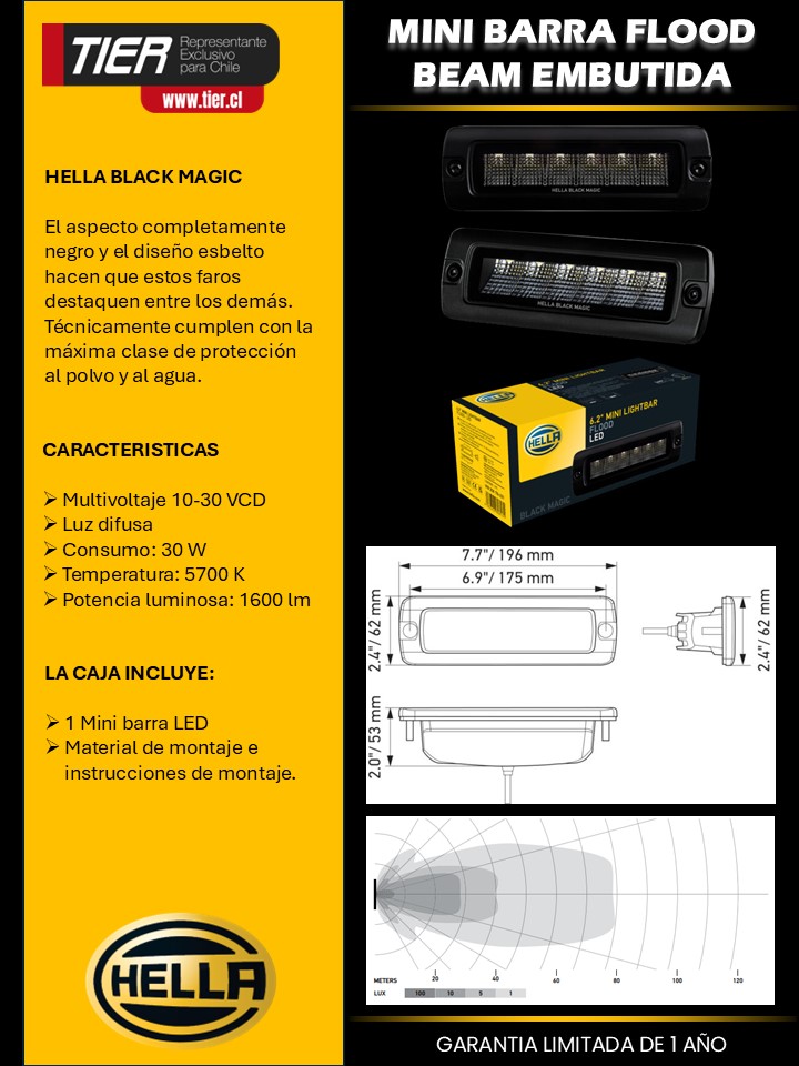 HELLA BLACK MAGIC 6 LED MINI BARRA – FLOOD BEAM EMBUTIDA